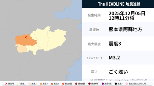 12月5日11時4分頃、長野県北部を震源とするマグニチュード2.5の地震が観測された。最大震度1を観測したのは、長野県。