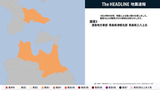 12月9日4時1分頃、青森県東方沖を震源とするマグニチュード5.2の地震が観測された。最大震度2を観測したのは、北海道・青森県など。