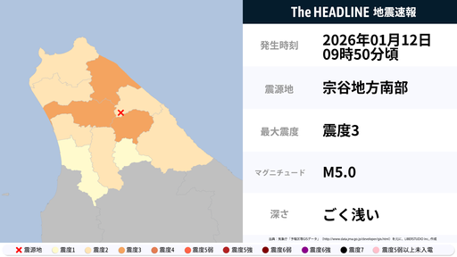 1月12日9時48分頃、宗谷地方北部・宗谷地方南部で震度3以上の地震を観測した。現時点の発表では、宗谷地方北部・宗谷地方南部で最大震度3の観測が発表されている。