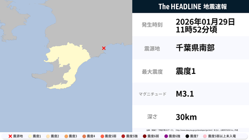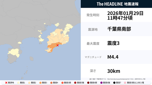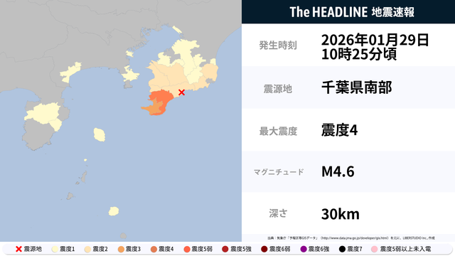 1月29日10時25分頃、千葉県で最大震度4の地震を観測