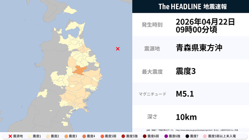 4月20日17時32分頃、青森県・岩手県などで最大震度2の地震を観測