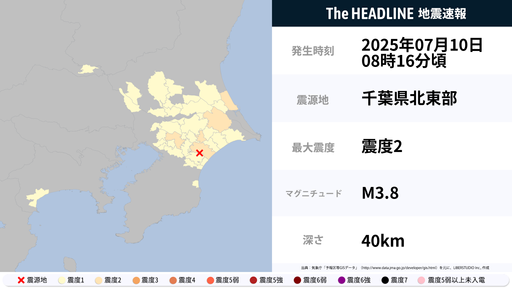 7月10日8時16分頃、茨城県・千葉県で最大震度2の地震を観測