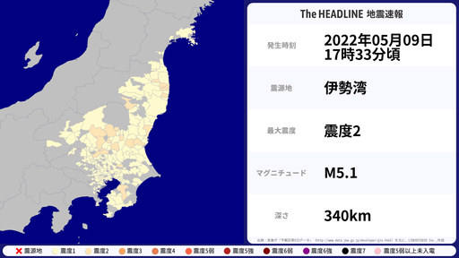5月9日17時33分頃、福島県などで最大震度2を観測する地震がありました。