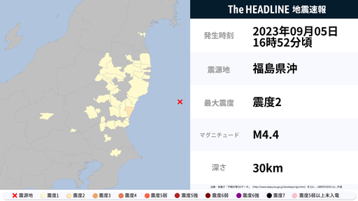 10月5日0時21分頃、福島県で最大震度4の地震を観測