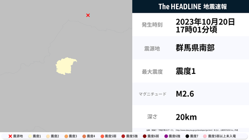 10月20日17時1分頃、埼玉県で最大震度1の地震を観測