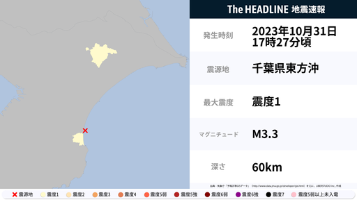 10月31日17時27分頃、千葉県で最大震度1の地震を観測