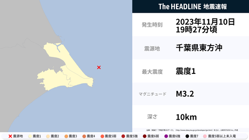 11月10日19時27分頃、茨城県・千葉県で最大震度1の地震を観測
