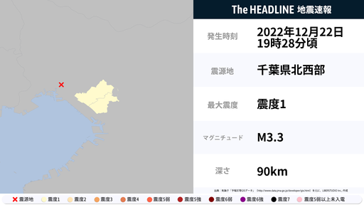 12月22日19時28分頃、千葉県で最大震度1の地震を観測