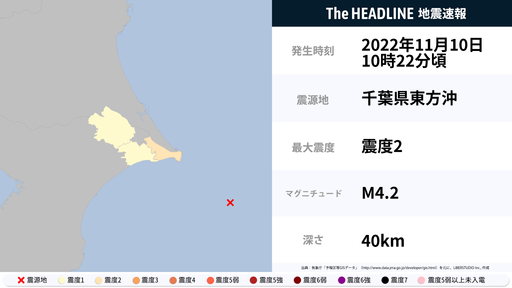 11月10日10時23分頃、千葉県で最大震度2の地震を観測