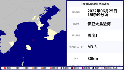6月25日18時49分頃、千葉県などで最大震度1を観測する地震がありました。