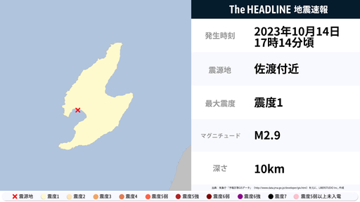 10月14日17時14分頃、新潟県で最大震度1の地震を観測