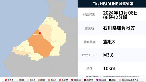 11月6日6時42分頃、石川県で最大震度3の地震を観測