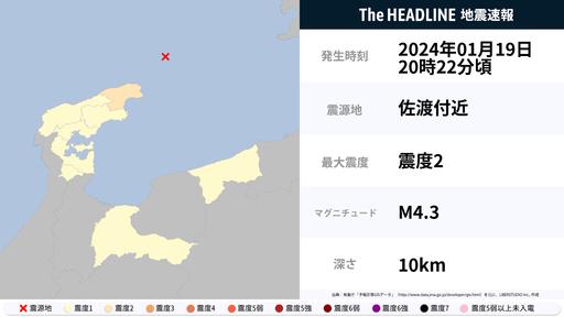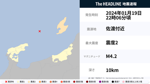 1月19日22時6分頃、新潟県で最大震度2の地震を観測