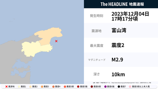12月4日17時17分頃、石川県で最大震度2の地震を観測
