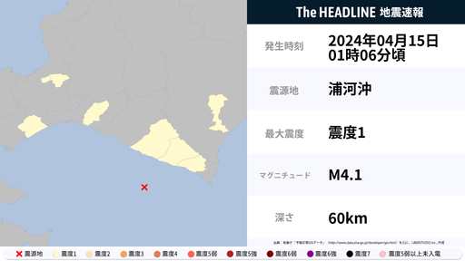 4月15日1時6分頃、北海道で最大震度1の地震を観測