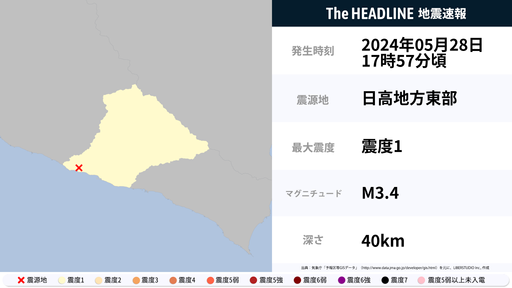 5月28日17時57分頃、北海道で最大震度1の地震を観測