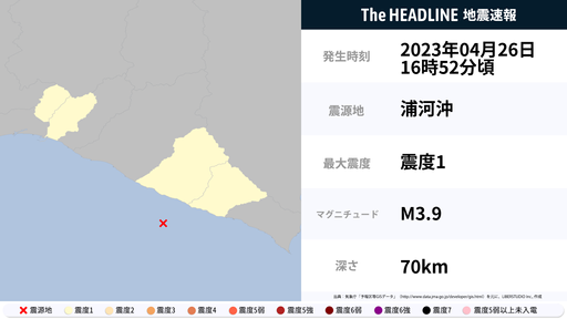 4月26日16時52分頃、北海道で最大震度1の地震を観測