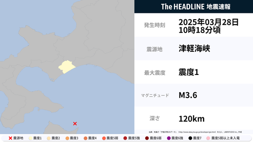 4月6日2時25分頃、北海道・青森県で最大震度1の地震を観測