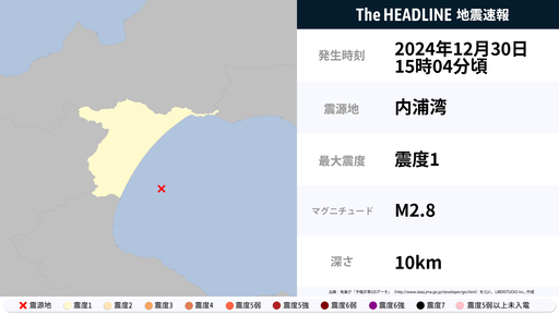 12月29日14時20分頃、北海道・青森県で最大震度1の地震を観測