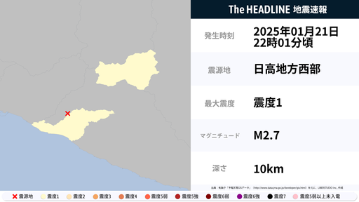 1月21日22時1分頃、北海道で最大震度1の地震を観測