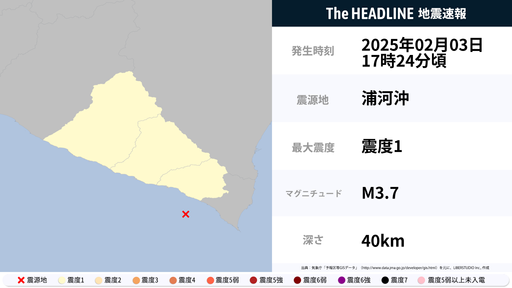 2月3日17時24分頃、北海道で最大震度1の地震を観測