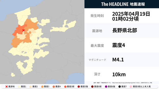 4月19日1時2分頃、長野県で最大震度4の地震を観測