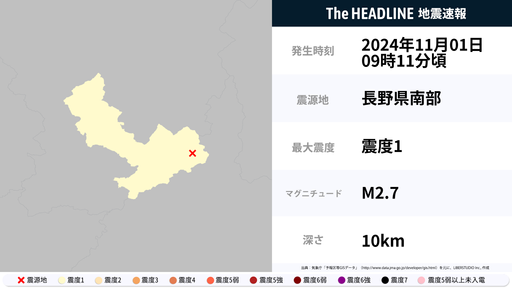 11月1日9時11分頃、長野県で最大震度1の地震を観測