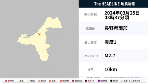 3月25日3時37分頃、長野県で最大震度1の地震を観測