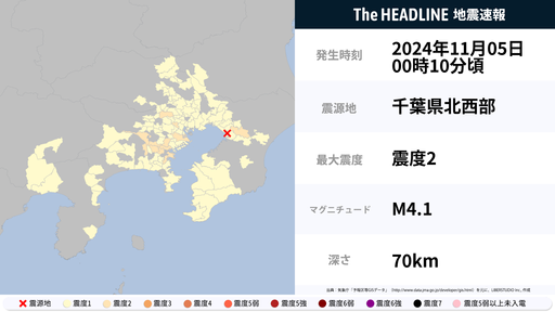11月5日0時11分頃、千葉県・東京都などで最大震度2の地震を観測