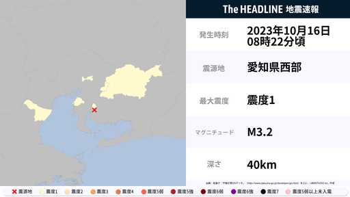 10月16日8時23分頃、愛知県・三重県で最大震度1の地震を観測