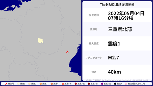 10月9日6時51分頃、愛知県・三重県で最大震度2の地震を観測