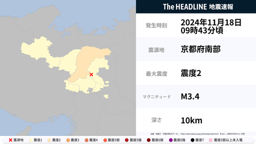 11月18日9時43分頃、京都府で最大震度2の地震を観測