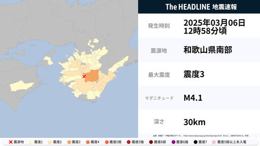 3月6日12時59分頃、奈良県で最大震度3の地震を観測