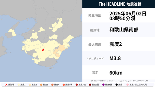 6月2日8時50分頃、三重県で最大震度2の地震を観測