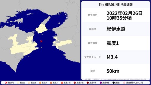 2月26日10時35分頃、兵庫県などで最大震度1を観測する地震がありました。