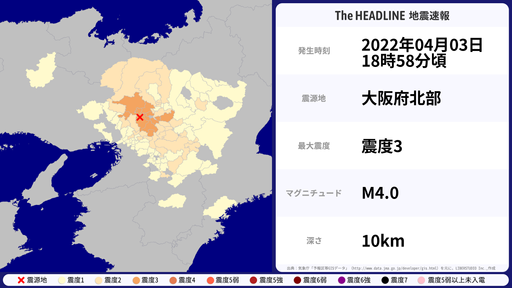 4月3日18時58分頃、京都府などで最大震度3を観測する地震がありました。