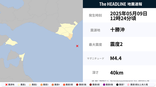 5月9日12時24分頃、北海道で最大震度2の地震を観測
