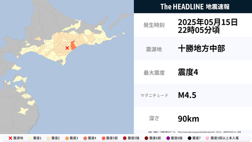 5月15日22時6分頃、北海道で最大震度4の地震を観測