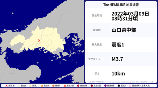 4月23日07時46分頃、山口県で最大震度3を観測する地震がありました。