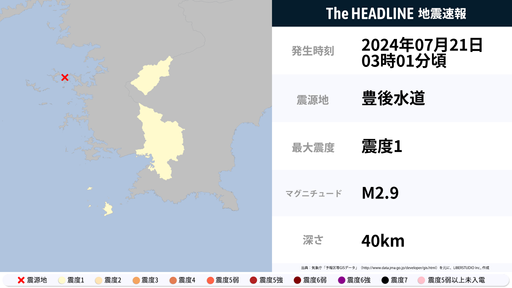 6月22日9時9分頃、愛媛県・大分県などで最大震度1の地震を観測