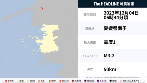 12月4日6時44分頃、愛媛県で最大震度1の地震を観測