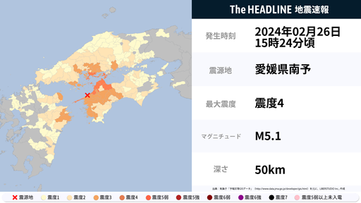 2月26日15時24分頃、広島県・愛媛県で最大震度4の地震を観測