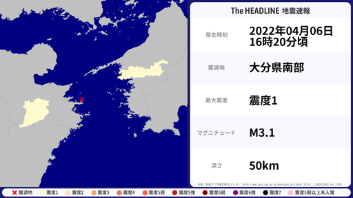4月6日16時21分頃、愛媛県などで最大震度1を観測する地震がありました。
