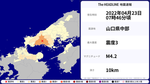 4月23日07時46分頃、山口県で最大震度3を観測する地震がありました。
