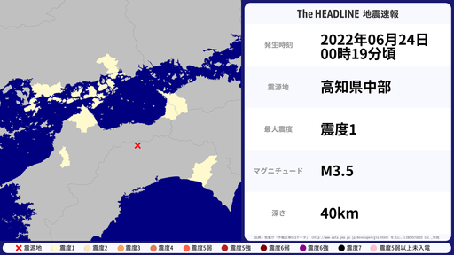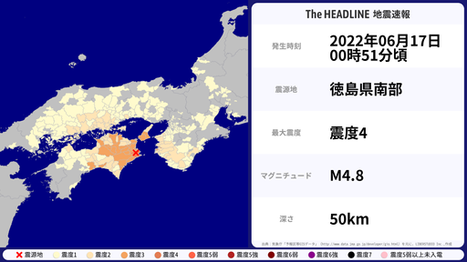 6月17日00時51分頃、徳島県で最大震度4を観測する地震がありました。