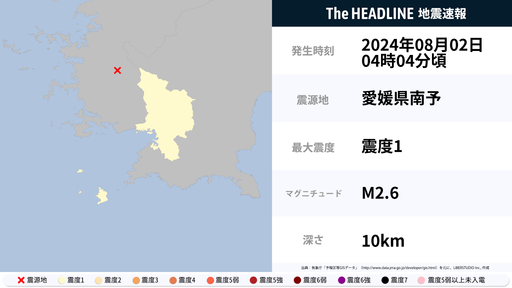 10月24日14時30分頃、愛媛県・高知県で最大震度1の地震を観測