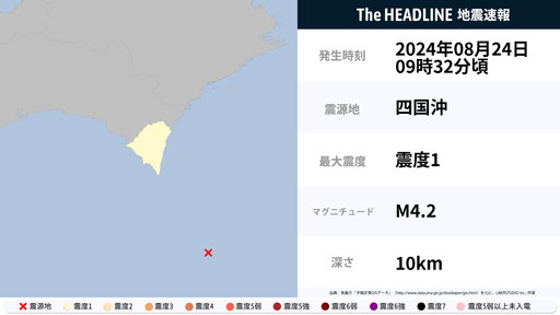 8月24日9時32分頃、高知県で最大震度1の地震を観測