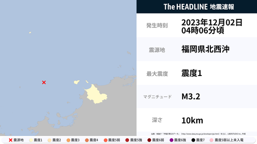 12月2日4時6分頃、福岡県で最大震度1の地震を観測