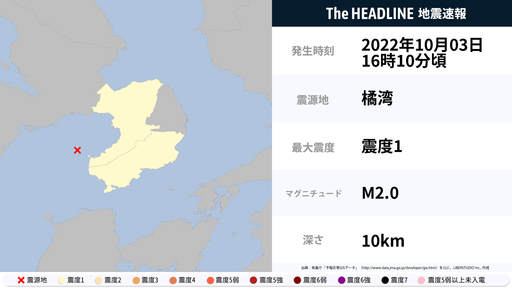 10月5日8時58分頃、熊本県で最大震度3の地震を観測