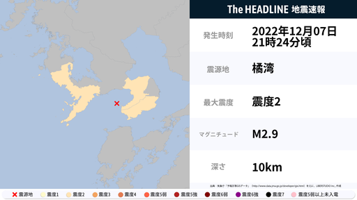 5月5日2時4分頃、長崎県・熊本県で最大震度1の地震を観測